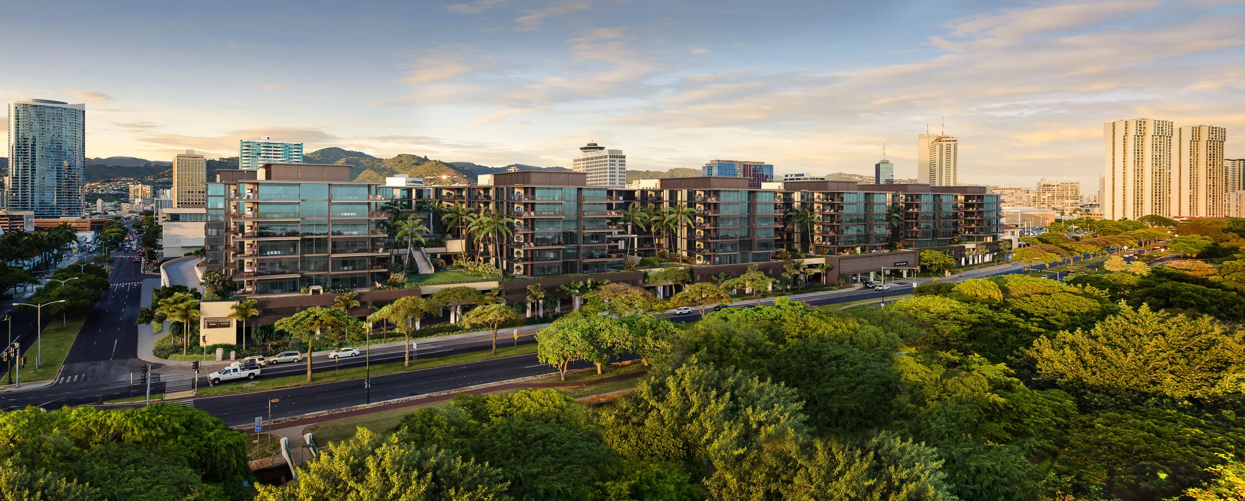 Connected to and fronting Ala Moana Center, Park Lane’s seven acres extend from the ocean (makai) to the mountains (mauka), with the beach and world-class shopping and dining literally at each doorstep. Residences possess the spacious autonomy of a single-family home with luxurious resort-like amenities.